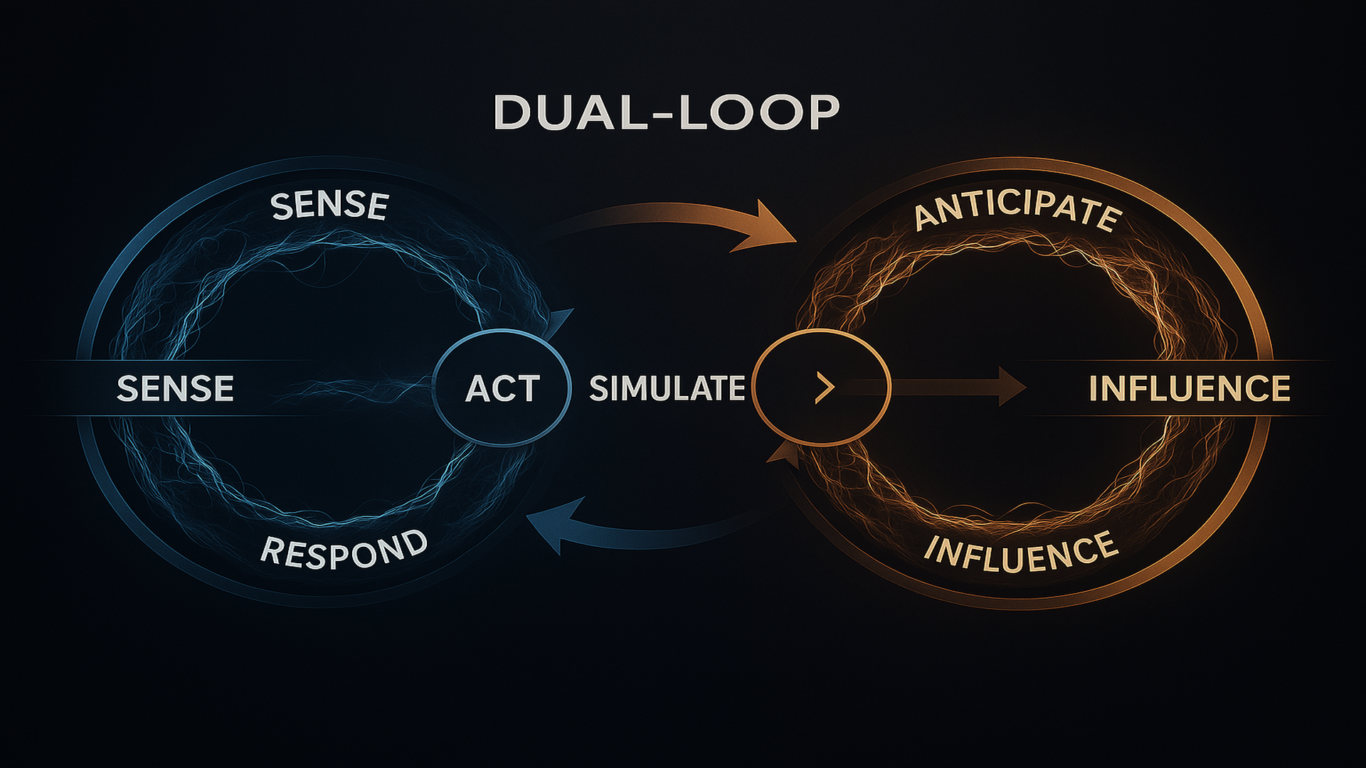 Think of Sense and Respond as the operational core. It remains the foundation for agility, real-time awareness, and adaptive action. Around this foundation, we can now build a second layer – a strategic loop that enables forward-looking influence. Together, these two loops form a dual-mode system: one optimized for now, the other optimized for next.