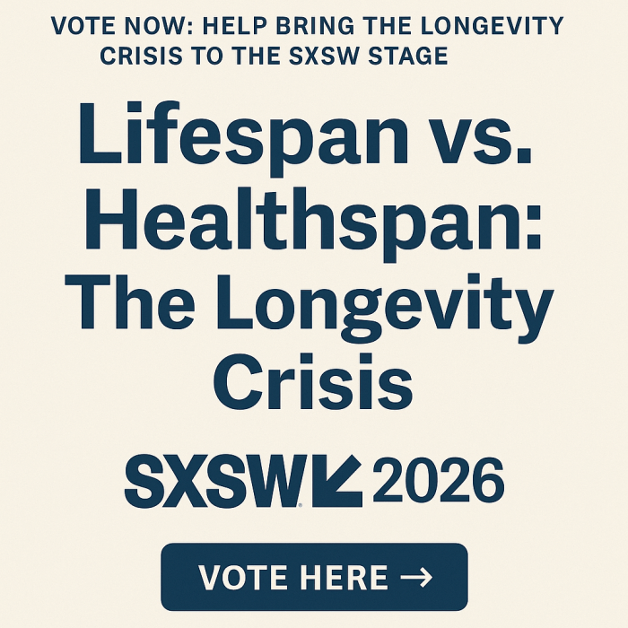 This insight led directly to a proposed session for SXSW 2026, titled: Lifespan vs. Healthspan: The Longevity Crisis