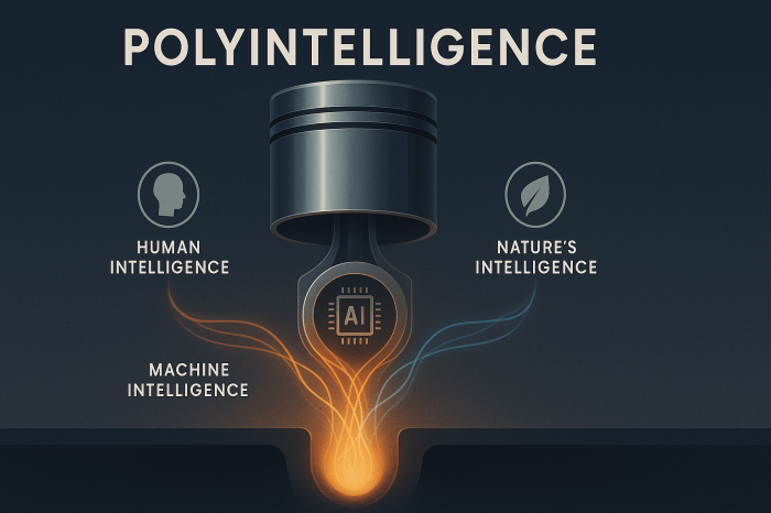 The present moment is shaped by three converging streams of intelligence: machine intelligence, biological intelligence, and planetary intelligence. These are the same sources that form what I have described elsewhere as polyintelligence — cognition distributed across humans, machines, and nature. Each stream is advancing on its own, but their deeper significance appears in how they now influence one another. Artificial intelligence extends cognition beyond the human mind. Synthetic biology brings design and computation into living systems. And the planet — long treated only as a resource base — is increasingly recognized as a source of insight. Through biomimetics, natural systems provide design principles refined through evolution: circularity instead of waste, resilience through diversity, and adaptation through constant sensing and feedback.